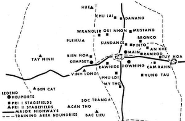 One of the ingenious ideas that the Ft. Wolters brain trust developed was the concept of dozens of relatively small training heliports scattered throughout the local area. These small training facilities became known as Stage Fields, enabling the huge facility to train literally hundreds of pilots simultaneously. Originally, they were given cool “cowboy” names, such as Pinto, Mustang, Bronco, and Ramrod. Later in the decade, as the war in Vietnam ramped up to its horrific climax (requiring thousands of additional chopper pilots), more Stage Fields were built and given monikers of actual in-theatre airfields. These were christened with names such as Hue, Chu Lai, Da Nang, An Khe, Bien Hoa, Soc Trang, and several others. Here’s an interesting tidbit concerning these little airfields: they were positioned in the same relative position as their real-world counterparts, thus allowing the newbie pilots to have a modicum of familiarity with the names and locations before they shipped overseas. Cool idea…right?