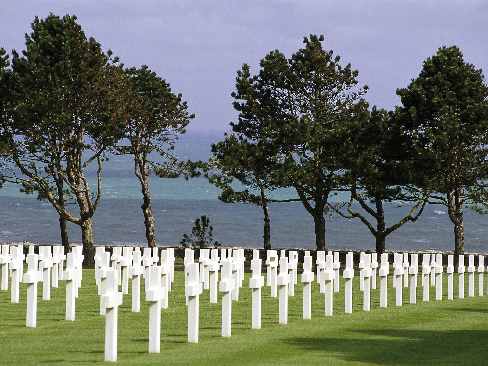 The lapping waves, the peaceful green grass, and the ocean of white crosses began to be overwhelming. Feelings of their fear, their pain and their sacrifice swept over me. I excused myself and turned toward the channel, crossing the cement path, I slowly walked down the grassed embankment, and just sat in the warm sand. In my mind’s eye I could see the ominous post-dawn leaden clouds, the roiling whitecaps of the waves, and the landing craft filled with wet figures slowly moving toward the beaches. Closer they came, and soon the sand was filled with all those terrified young men, running amongst the blinding flashes and deafening explosions…and dying…dying by the thousands, and the tears began to flow down my face…