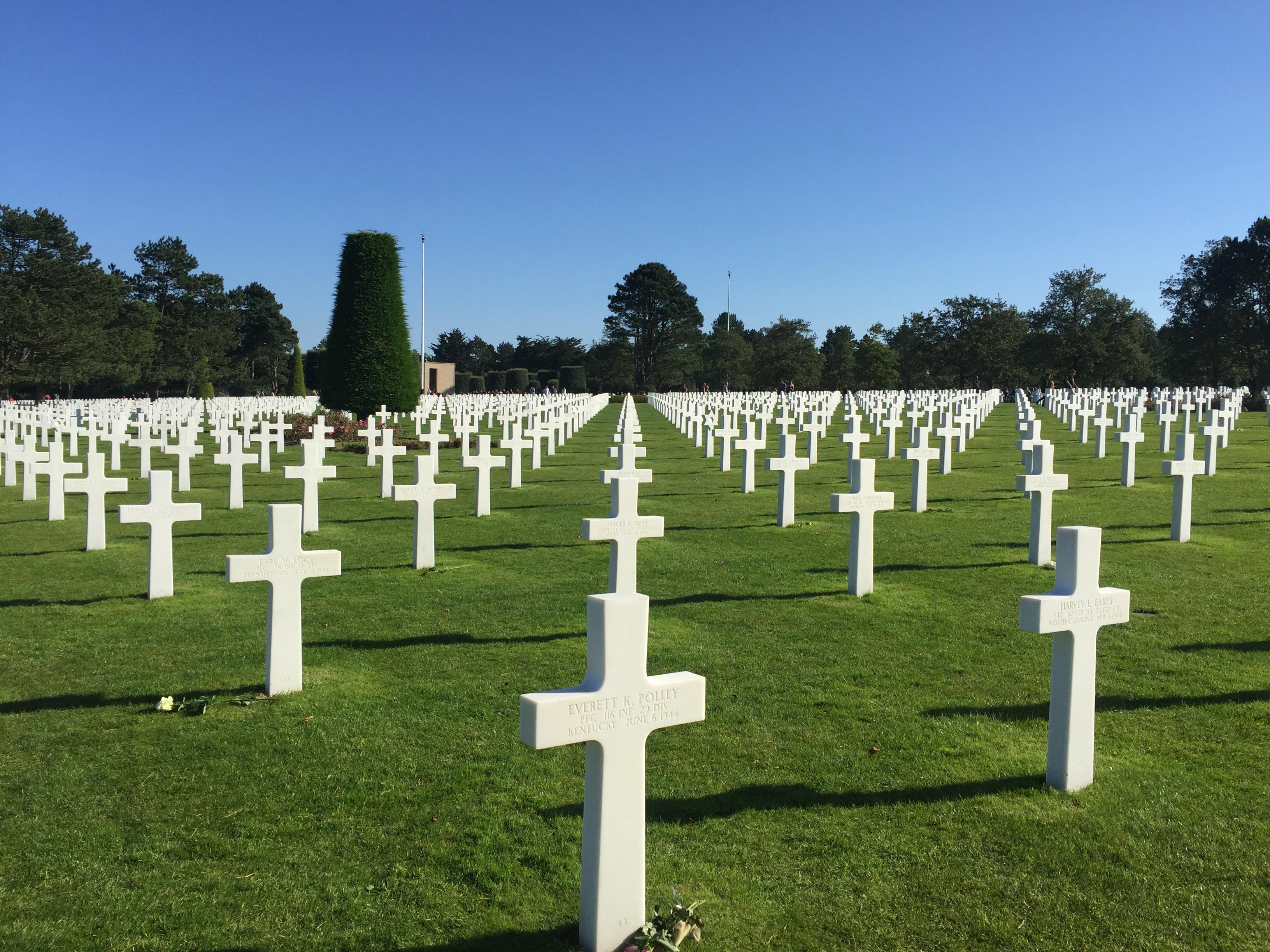 At one point, I joined her and we slowly walked together among the graves. We softly read the names, and I can only guess that she (like yours truly) was attempting to picture what the young man lying at our feet may have looked like. Was he tall, short, thin or not so thin? Red hair and freckles, or blond crew cut. So many crosses…so many letters to shattered parents.