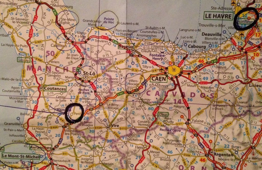The towns within an hour drive of Percy read like a “who’s who” of battles from D-Day and the bloody weeks that followed: the Omaha/Utah/Sword/Juno/Gold beaches, the towns of Sainte-Mere-Eglise, Carentan, Falaise, and Villers-Bocage, the cities of Bayeaux (home of the incredible Bayeaux Cathedral), the city of St. Lo (beautiful now, but completely destroyed by the fighting following D-Day), and the wonderful city of Caen (another city devastated by the brutal fighting of the war, but now beautifully rebuilt).